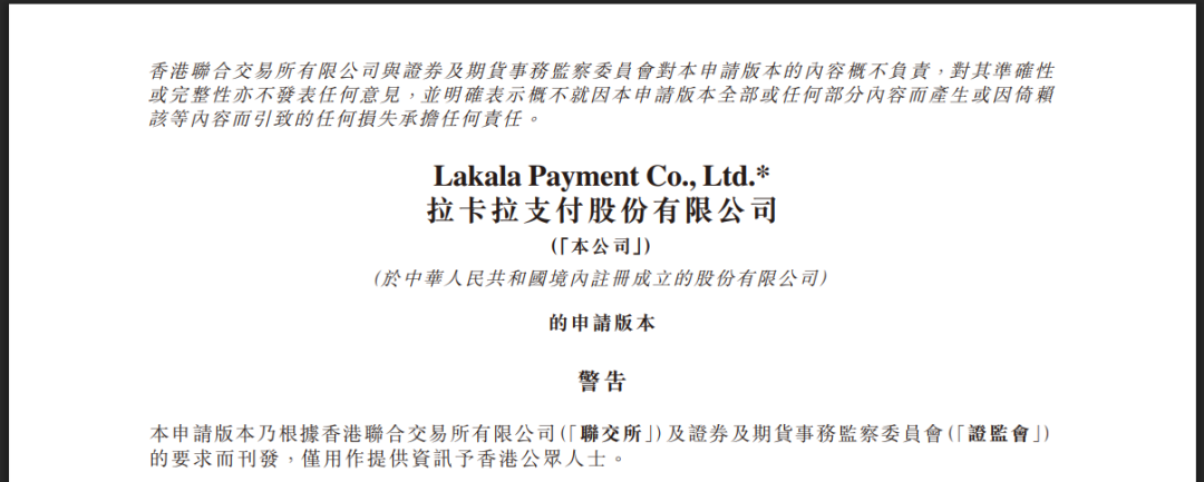 拉卡拉遞交在香港聯(lián)交所主板掛牌上市的申請(qǐng)